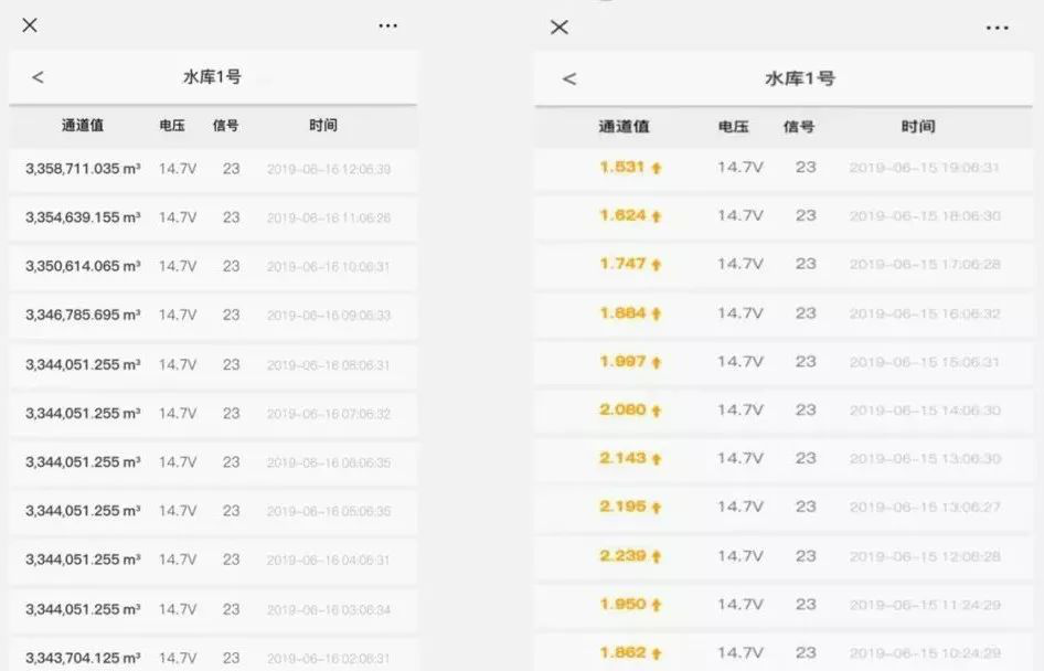 監(jiān)測點兼具防雷、防水等特性,蓄電池與太陽能的配合供電,可以解決各種現(xiàn)場供電問題。操作人員可以通過電腦或手機查詢數(shù)據(jù),實時監(jiān)測液位和流量的變化情況,手機端監(jiān)控如圖所示: