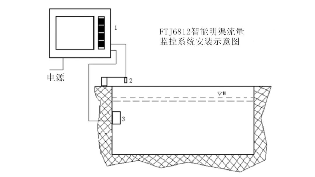 明渠流量計由流量顯示儀、電磁流速計、超聲液位計三部分構(gòu)成。電磁流速計安裝于渠道中,將水流速度轉(zhuǎn)換為電信號通過電纜傳送給顯示儀。超聲液位計安裝在流速計附近的渠道上方,測量渠道橫斷面上方的水位深度值,通過 4~20mA 電流信號形式傳送給顯示儀。顯示儀將流速信號、水位信號以及各種渠道參數(shù)通過運算得到過水斷面的水流量。