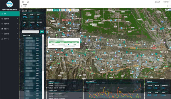 整個管網(wǎng)監(jiān)測由多個井下監(jiān)測單元組成,創(chuàng)威水務(wù)項目中,井下目前已安裝40余套監(jiān)測設(shè)備,覆蓋管網(wǎng)百余公里,涉及金臺、渭濱、高新三個區(qū),項目仍在持續(xù)進行中。