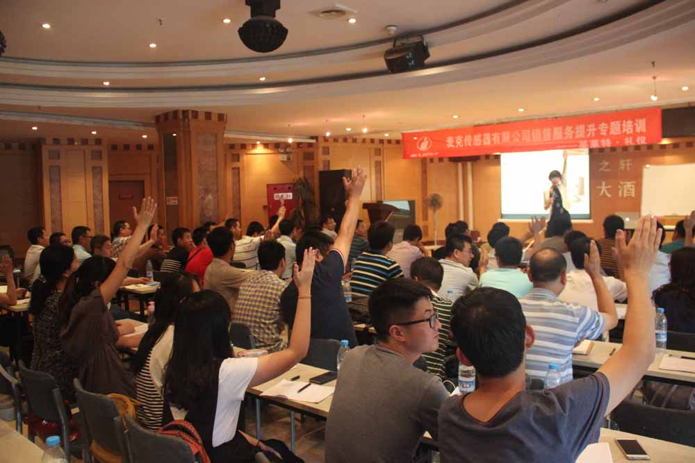 7月9 --10日,公司邀請了國家職業(yè)培訓(xùn)師陳曉娟老師,為國內(nèi)外業(yè)務(wù)人員進(jìn)行銷售技巧及銷售禮儀的內(nèi)訓(xùn)。陳老師講課細(xì)致全面,注重調(diào)動參訓(xùn)學(xué)員積極性,旨在塑造銷售人員的職業(yè)形象和銷售禮儀,并從銷售人員儀容儀表、行為舉止、接待溝通等方面做出提升和改變。在培訓(xùn)過程中,注重講授與互動相結(jié)合,使學(xué)員深刻理解銷售禮儀在工作中的重要性及掌握銷售禮儀所帶來的裨益。