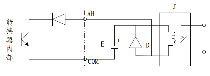 若外部定量控制電路采用圖3所示的方式,可使用繼電器的常開節(jié)點。定量未到時,內(nèi)部晶體管截至,線圈不通電,節(jié)點斷開;若定量值到達(dá)時,內(nèi)部晶體管導(dǎo)通,線圈通電,節(jié)點閉合。
