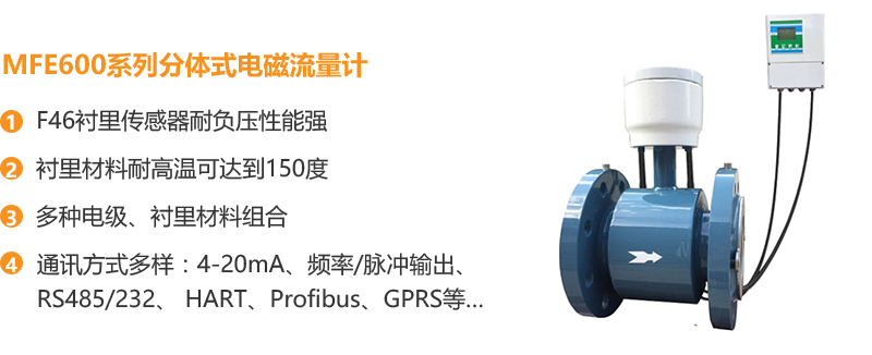 針對供水管網(wǎng)的特點(diǎn),我們推薦使用MFE600系列分體式電磁流量計(jì):