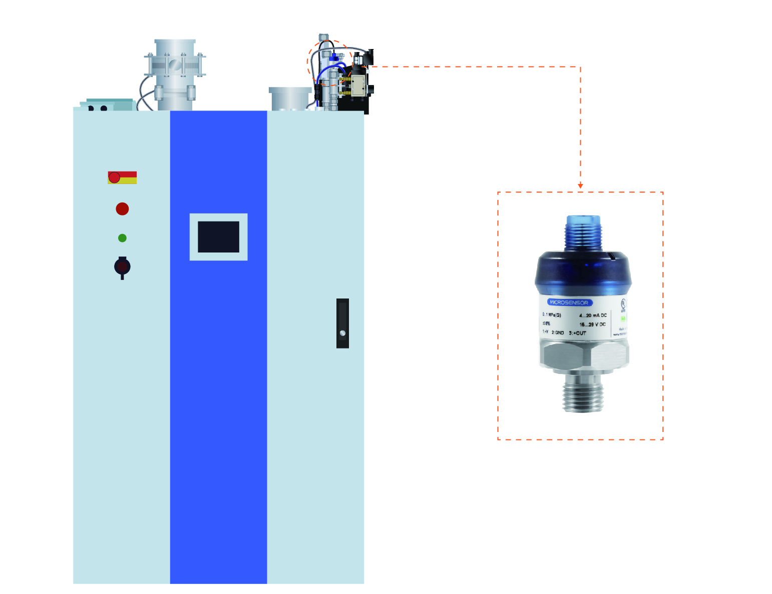 等離子清洗機(jī)中的等離子體是物質(zhì)的一種存在狀態(tài),其通常為工藝氣體,因此要在等離子清洗系統(tǒng)的相關(guān)氣路,加裝特制的壓力變送器用以監(jiān)測并反饋相關(guān)生產(chǎn)數(shù)據(jù)。