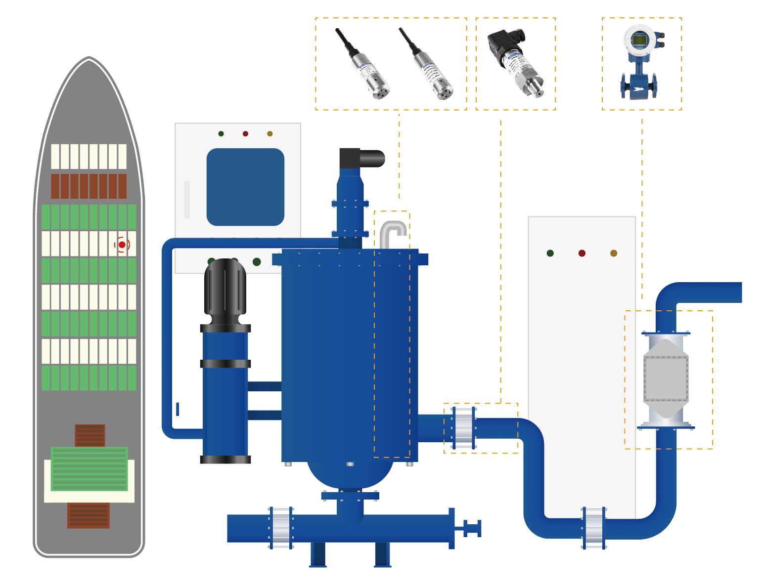 壓載艙液位監(jiān)測通過利用電磁流量計(jì)、液位變送器、壓力變送器等設(shè)備監(jiān)測進(jìn)水流量、水艙液位以及壓力的數(shù)據(jù),達(dá)到壓載水系統(tǒng)精準(zhǔn)控制的目的。